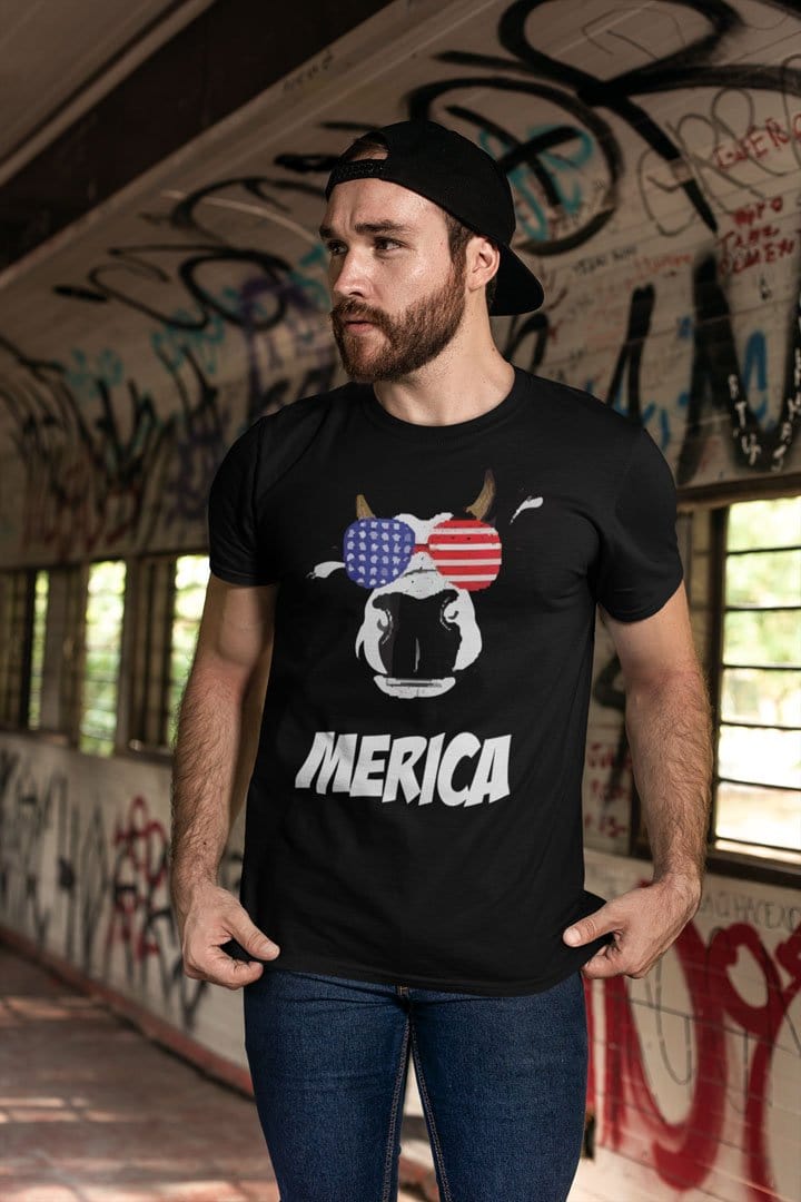 Merica Cow With America Flag Sunglasses
