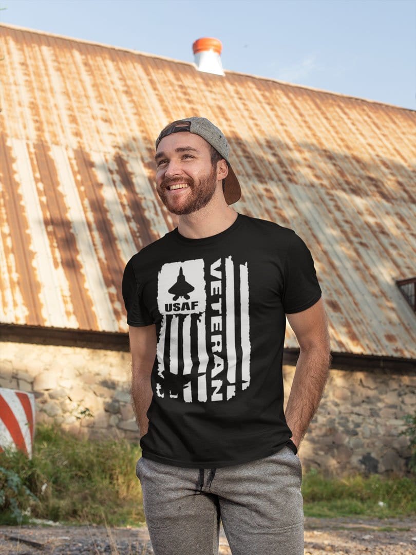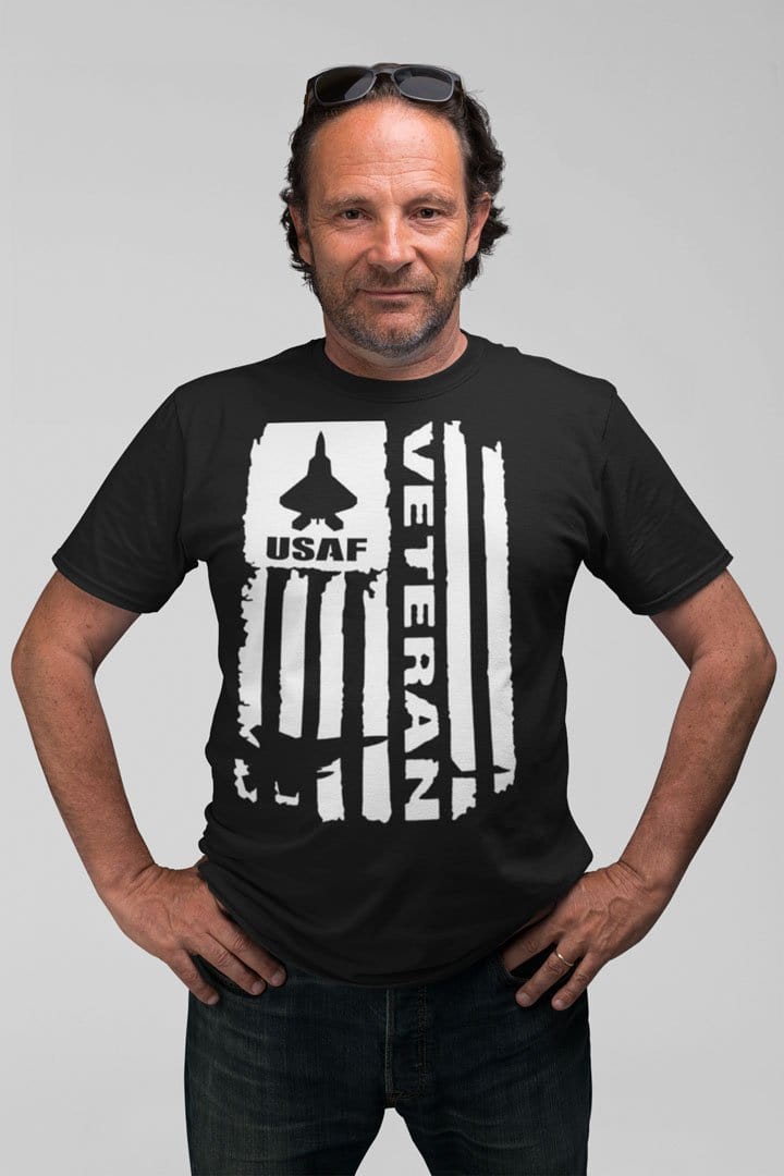 USAF Veteran On Distressed American Flag With Jet Silhouette